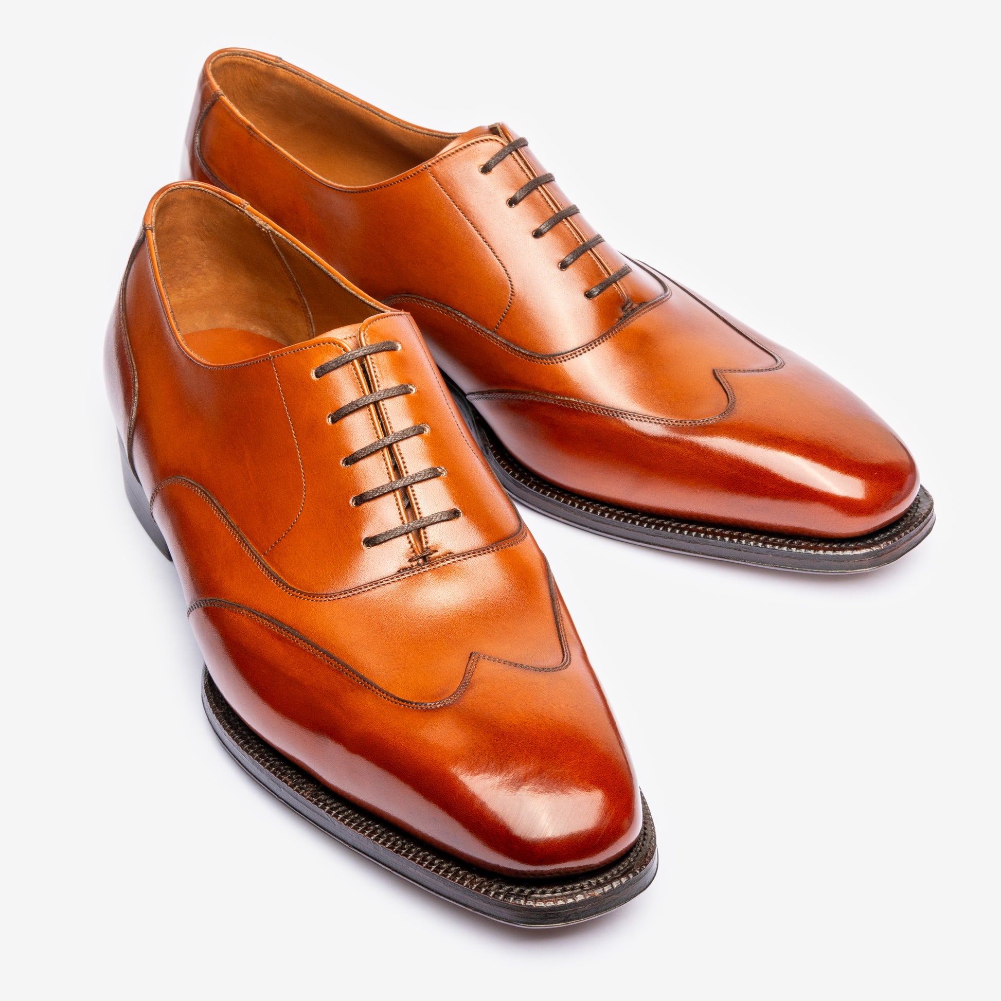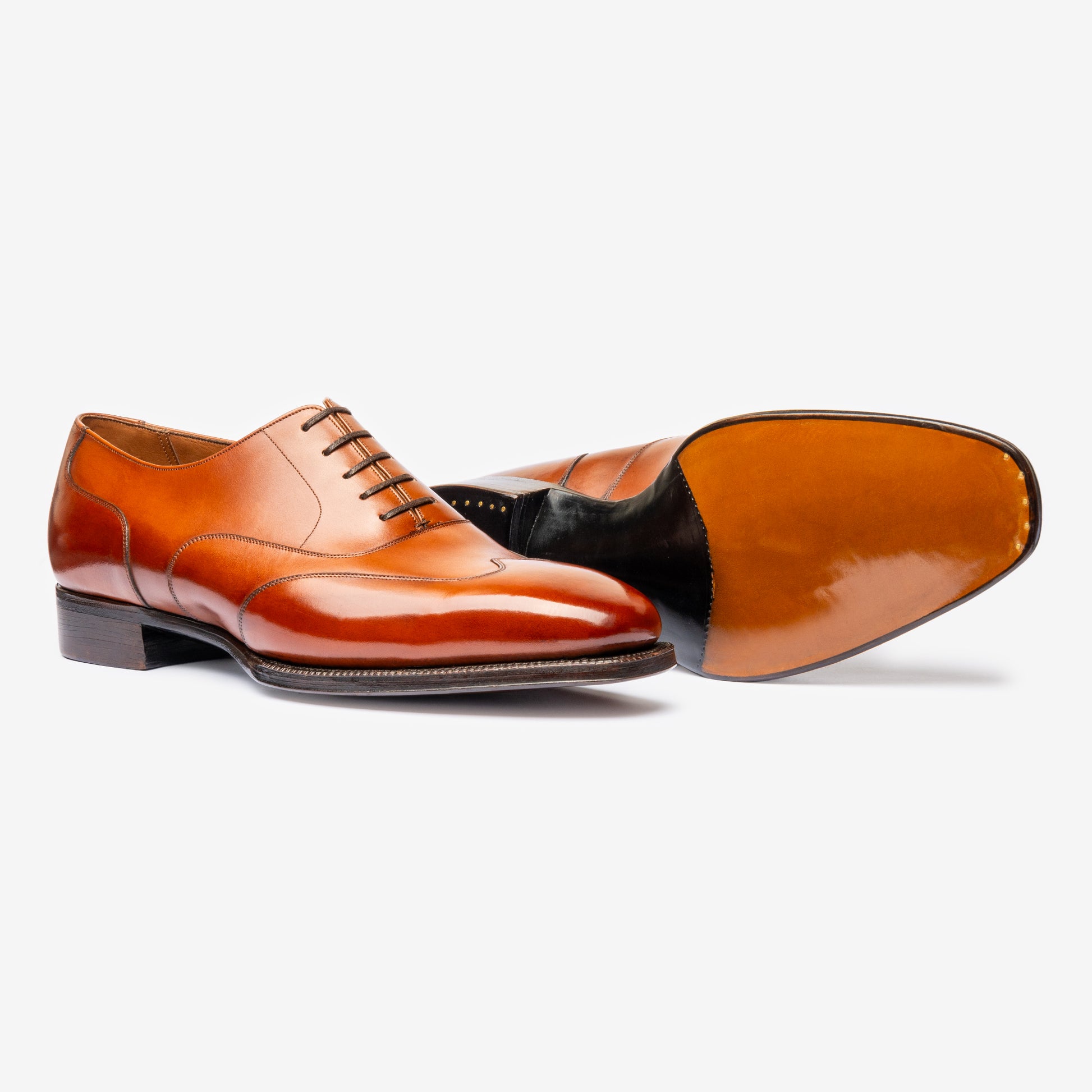 Oak Bark Tanned Leather outsoles from FJ Baker, Limited edition Upper Leathers from the Tanneries of Zonta, Weinheimer, Du Puy, and Annonay, and with the option of adding metal toe taps.