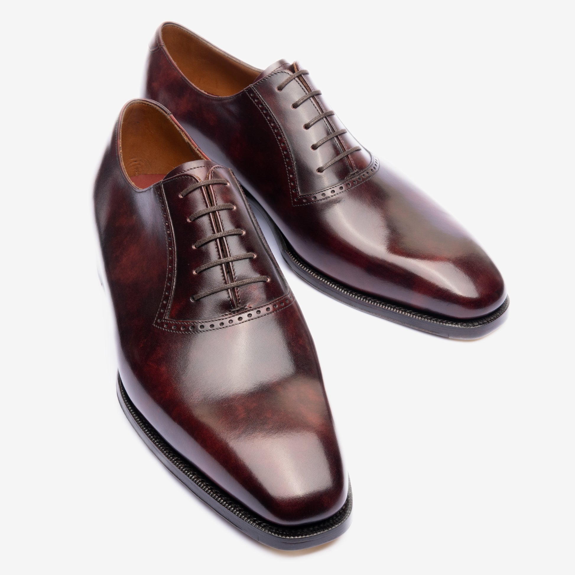 Oak Bark Tanned Leather outsoles from FJ Baker, Limited edition Upper Leathers from the Tanneries of Zonta, Weinheimer, Du Puy, and Annonay, and with the option of adding metal toe taps.