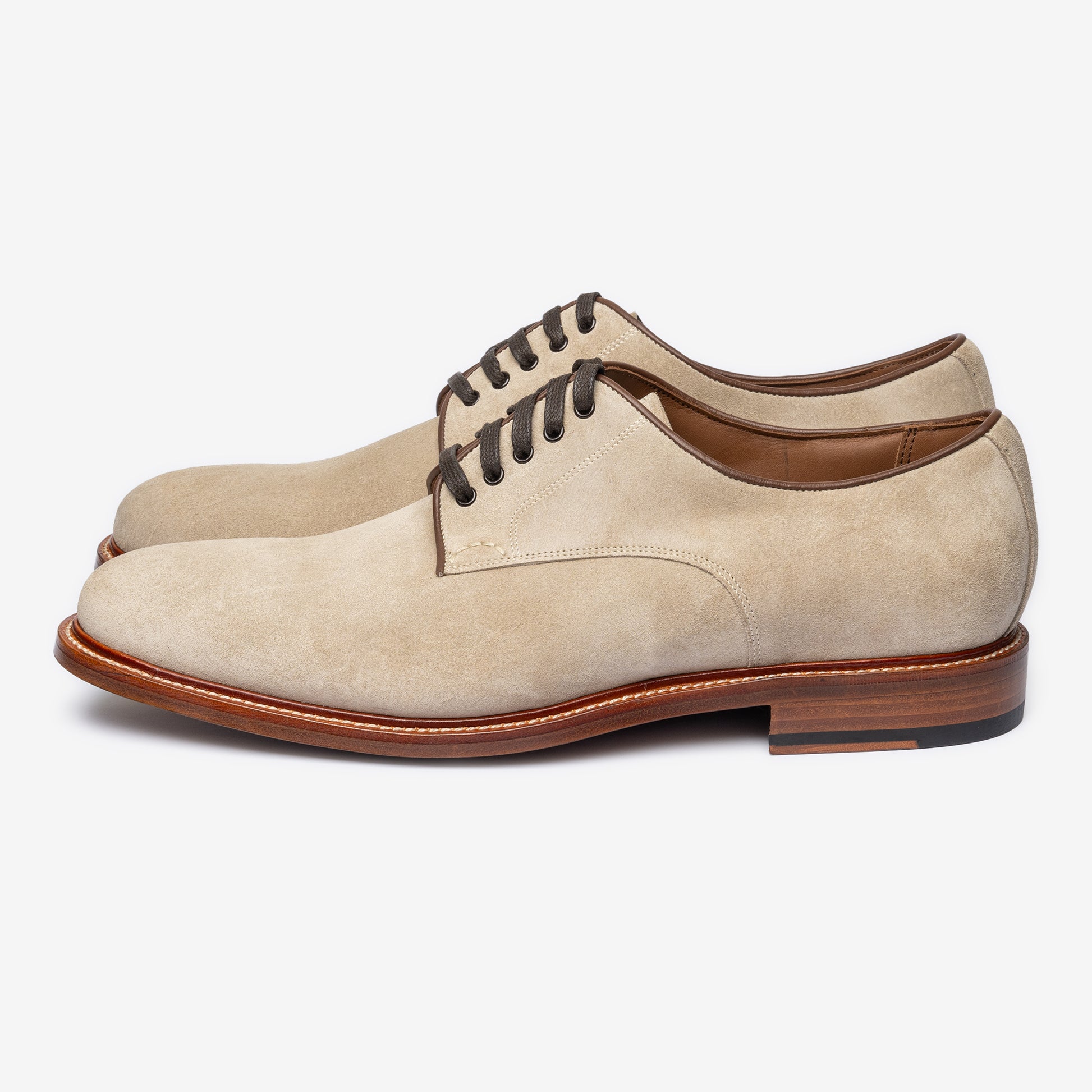 Our shoes are stitched to a leather channel on the insole unlike most factory made shoes where it is stitched to a gemmed cotton rib.