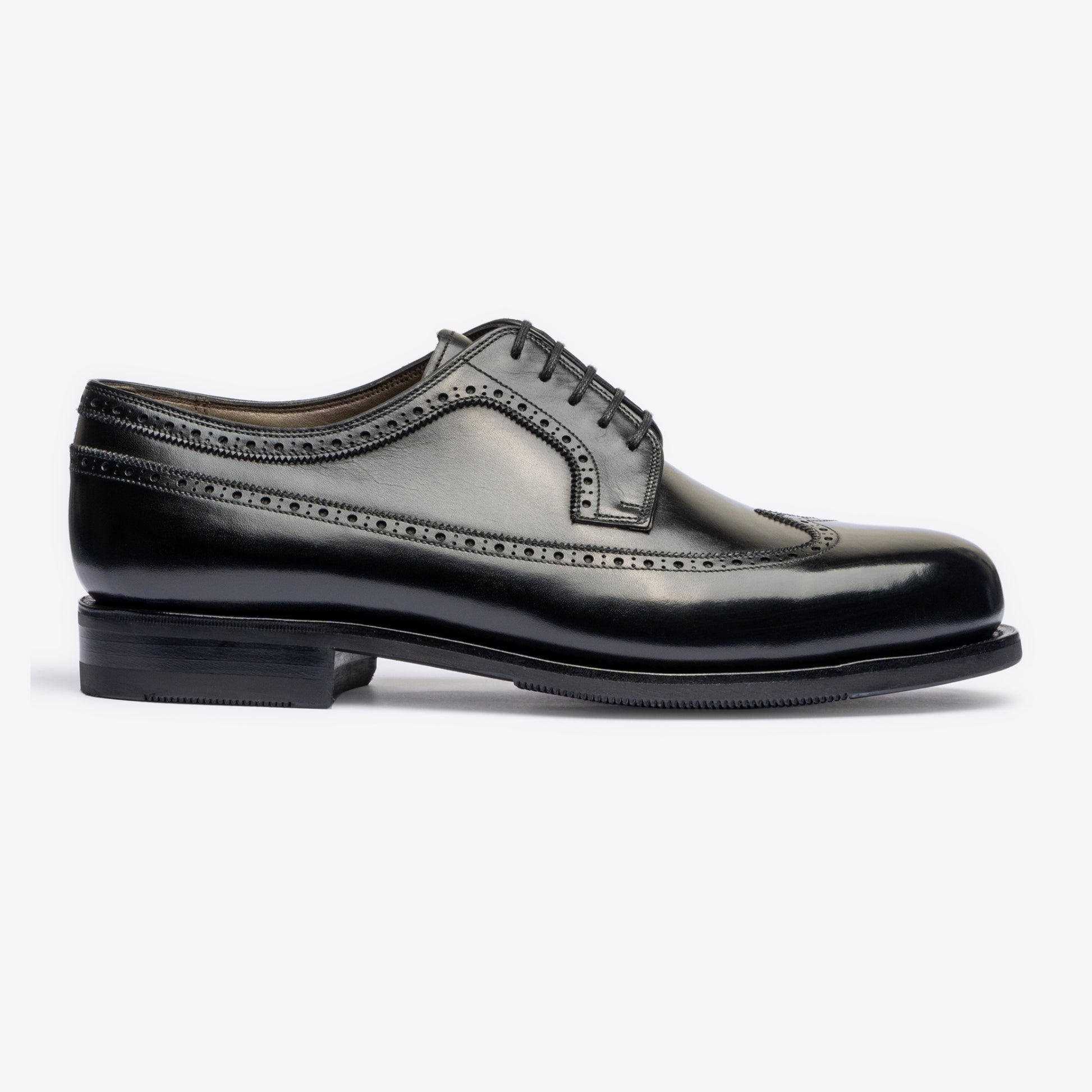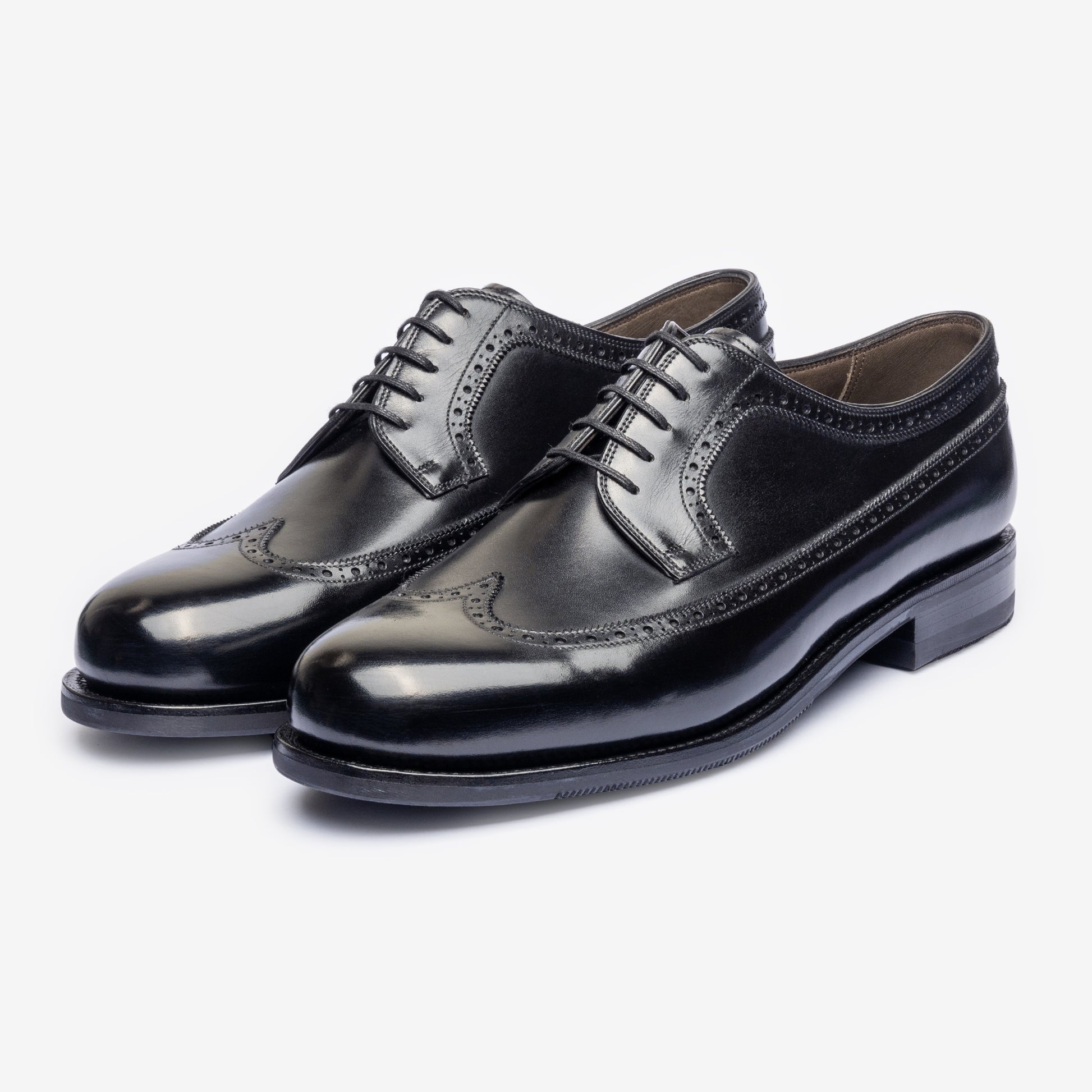 The seat area fits more snug to the heel as leather board counter is a more breathable and living material adding to a comfortable and good fit. The heels are stacked layer by layer and nailed top-down making for a robust yet clean, premium finish.