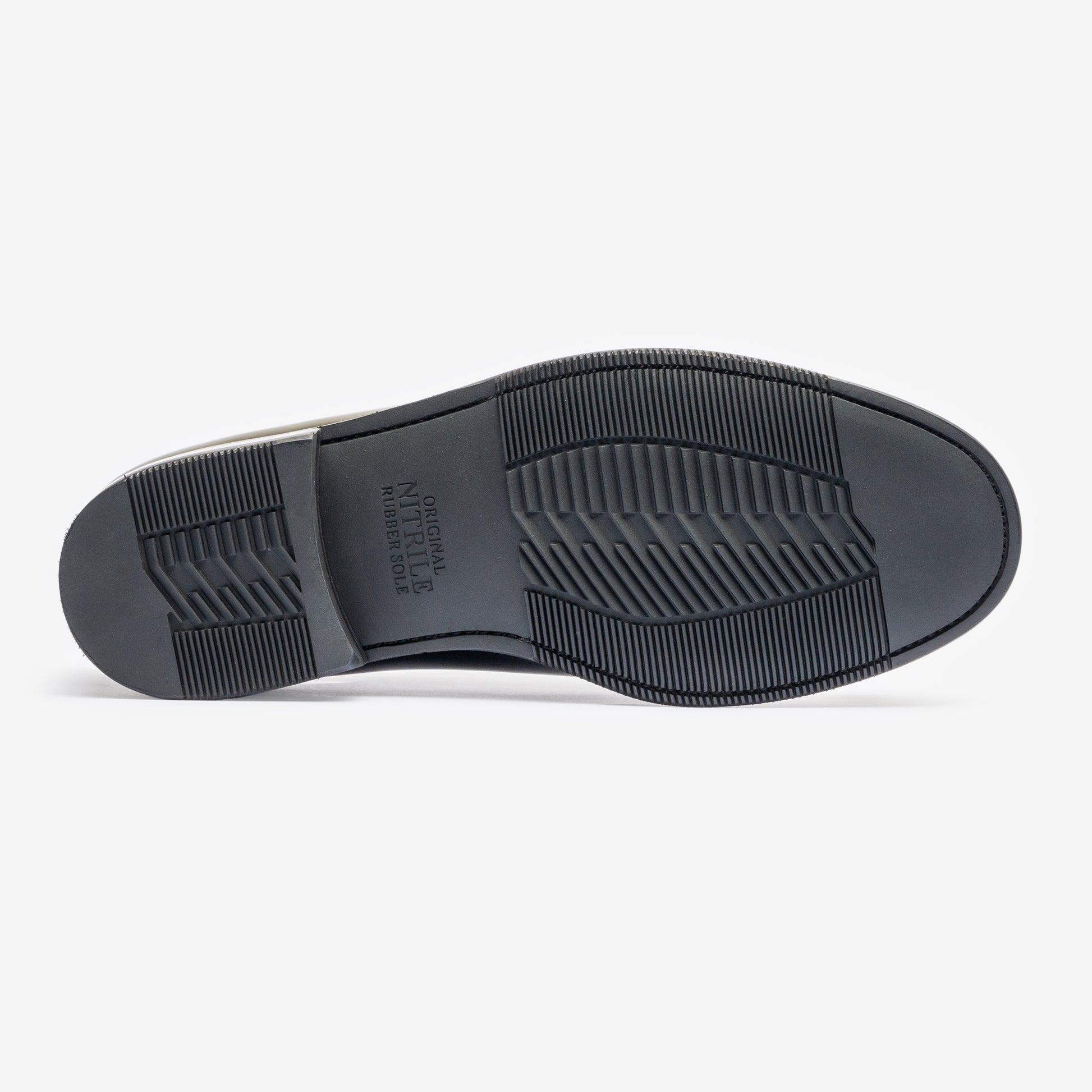 Outsole : Closed channeled flexible leather/ Grooved 100% Genuine nitrile rubber