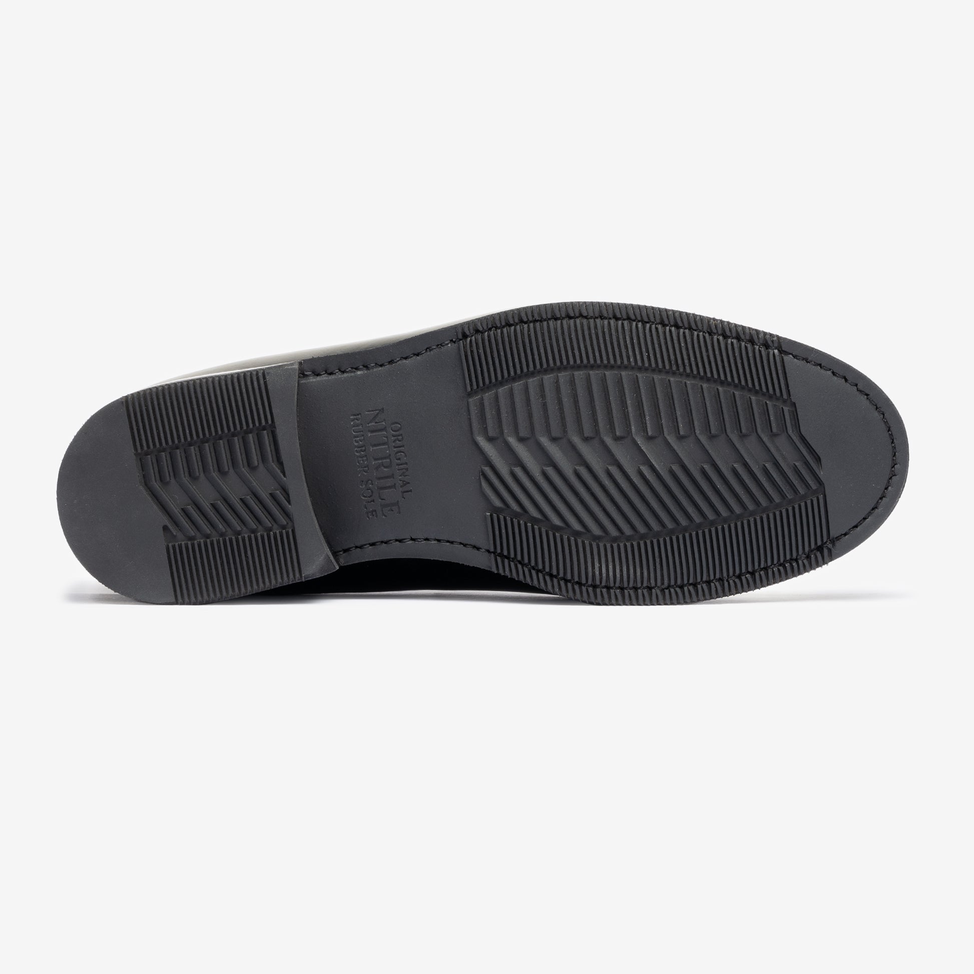 Outsole : Closed channeled flexible leather/ Grooved 100% Genuine nitrile rubber