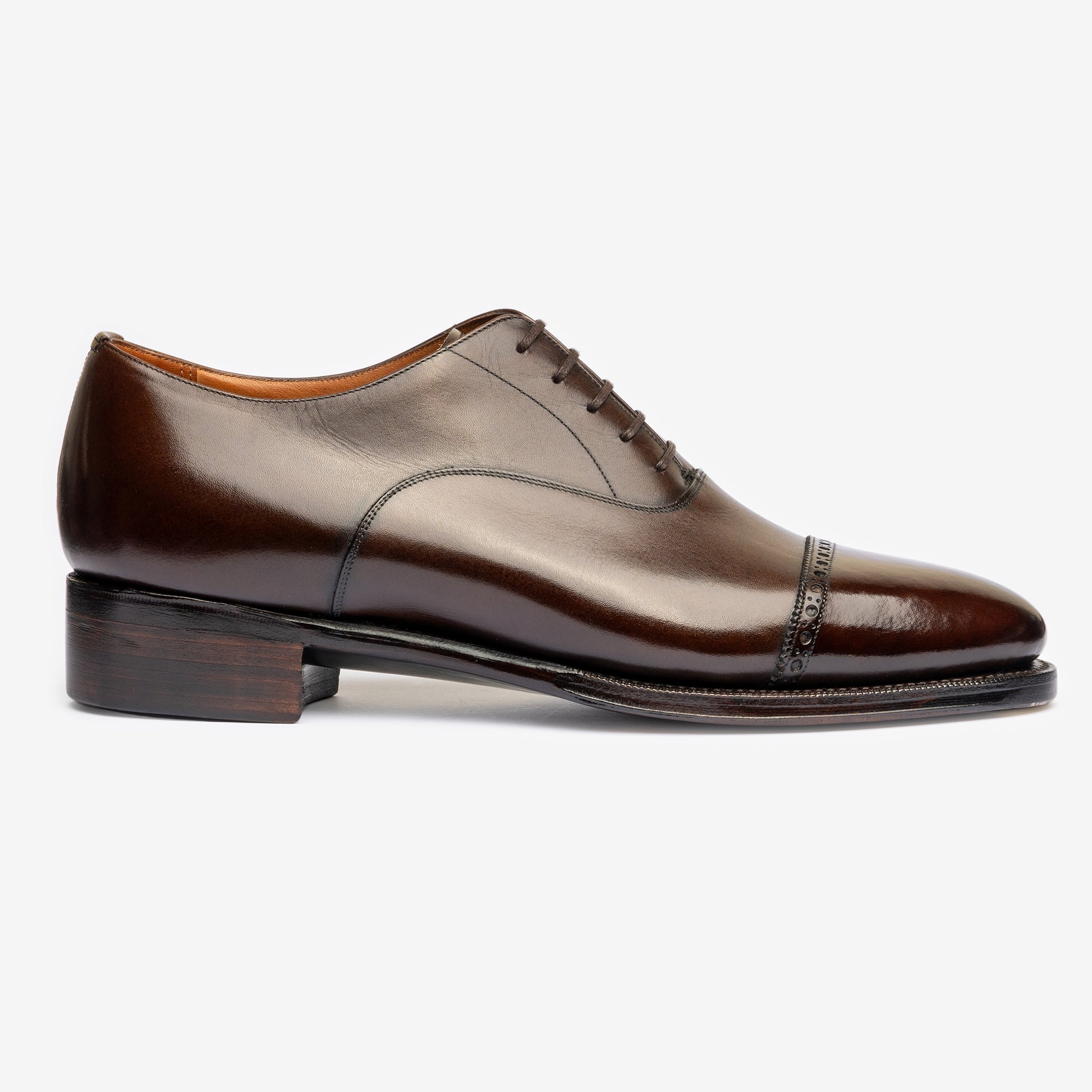 Oak Bark Tanned Leather outsoles from FJ Baker, Limited edition Upper Leathers from the Tanneries of Zonta, Weinheimer, Du Puy, and Annonay, and with the option of adding metal toe taps.